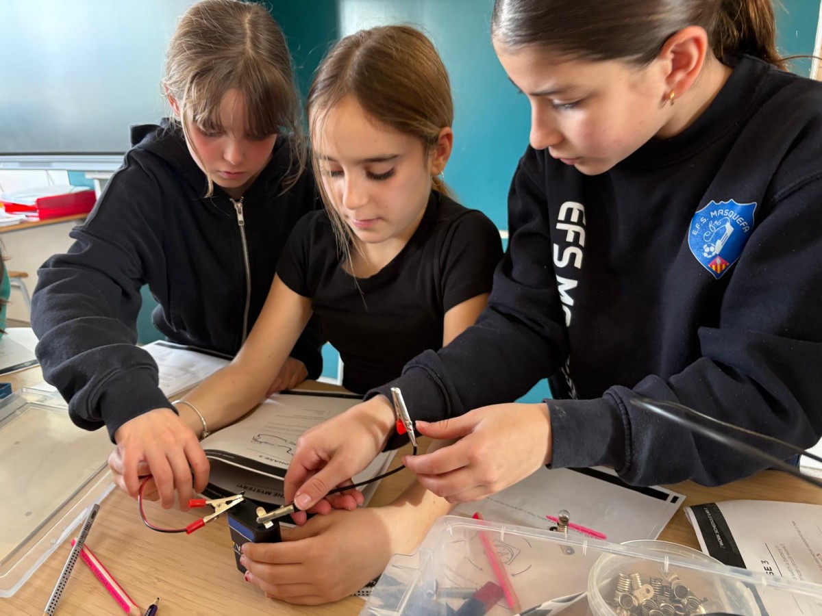 Nosaltres hem descobert que perquè un circuit elèctric funcioni, cal que estigui complet. Només així el corrent pot circular per tots els components i fer que la bombeta s’encengui. Si hi ha un tall, el corrent no pot avançar i la bombeta queda apagada. Hi ha forces que no necessiten contacte directe. Els camps magnètics i elèctrics permeten que els objectes s’atreuen o es repel·leixin a distància. Els imants, per exemple, creen un camp magnètic que fa que els pols iguals es rebutgin i els pols contraris s’atraiguin. La brúixola funciona perquè la Terra té el seu propi camp magnètic, i l’agulla —que també és un imant— s’hi alinea.