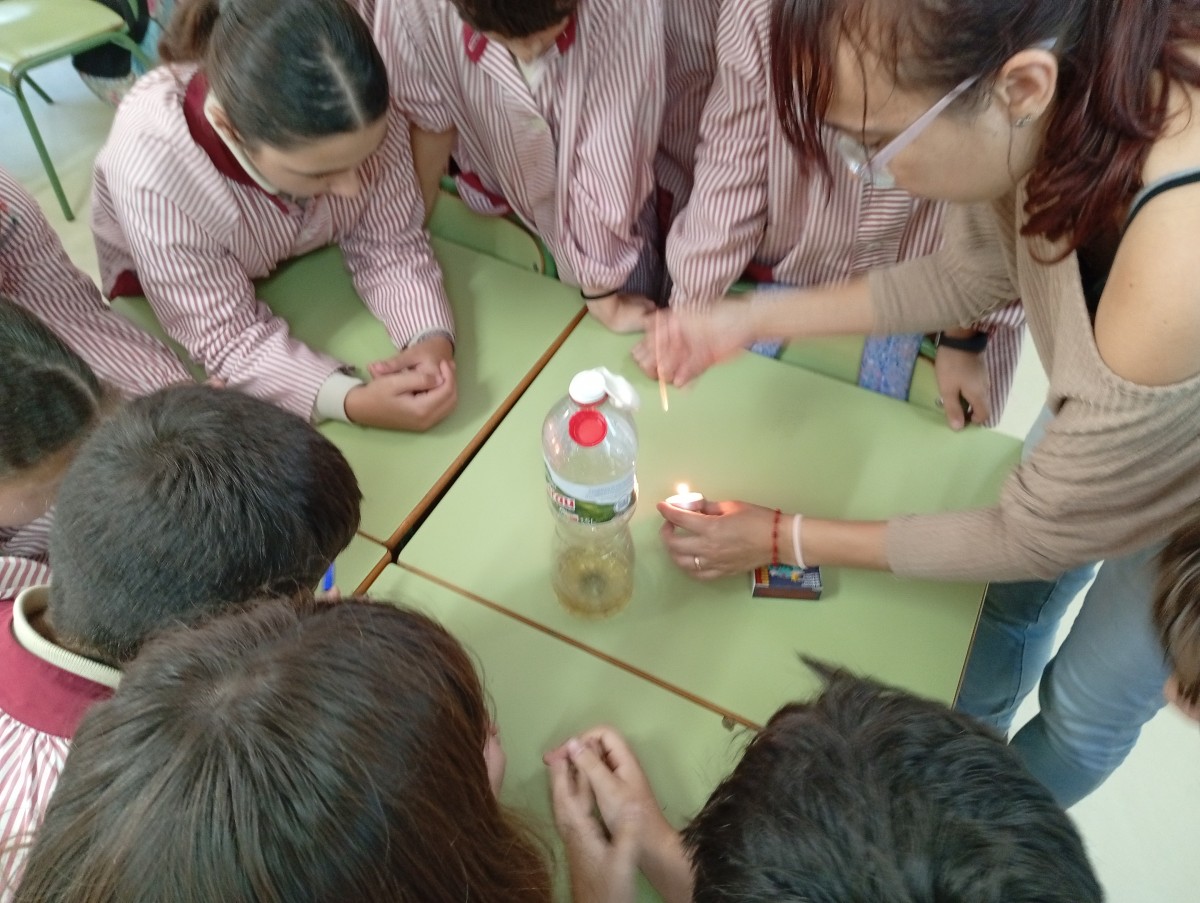 En aquest repte hem descobert que no només existeix el que veiem. Hi ha coses que no podem veure, com l’aire o alguns gasos, però tot i així hi són perquè podem notar els seus efectes. En els nostres experiments, tot i que no vèiem el gas que s’havia creat, sabíem que hi era perquè apagava l’espelma. També hem après que la matèria pot estar en diferents estats: sòlid, líquid i gas. A vegades, si canviem la temperatura, pot canviar d’estat, com quan el gel es fon i es converteix en aigua, o quan l’aigua s’escalfa i es transforma en vapor. Una altra cosa important que hem treballat és la densitat, que és com de “plena” o “atapeïda” està una substància dins l’espai que ocupa. En els experiments la densitat ha estat molt important perquè el gas que es produïa, el diòxid de carboni, és més dens que l’aire. Això fa que baixi i es quedi dins del got, i per això el podem “abocar” sobre l’espelma encara que no el puguem veure. Com que aquest gas desplaça l’oxigen, la flama es queda sense aire per cremar i s’apaga.