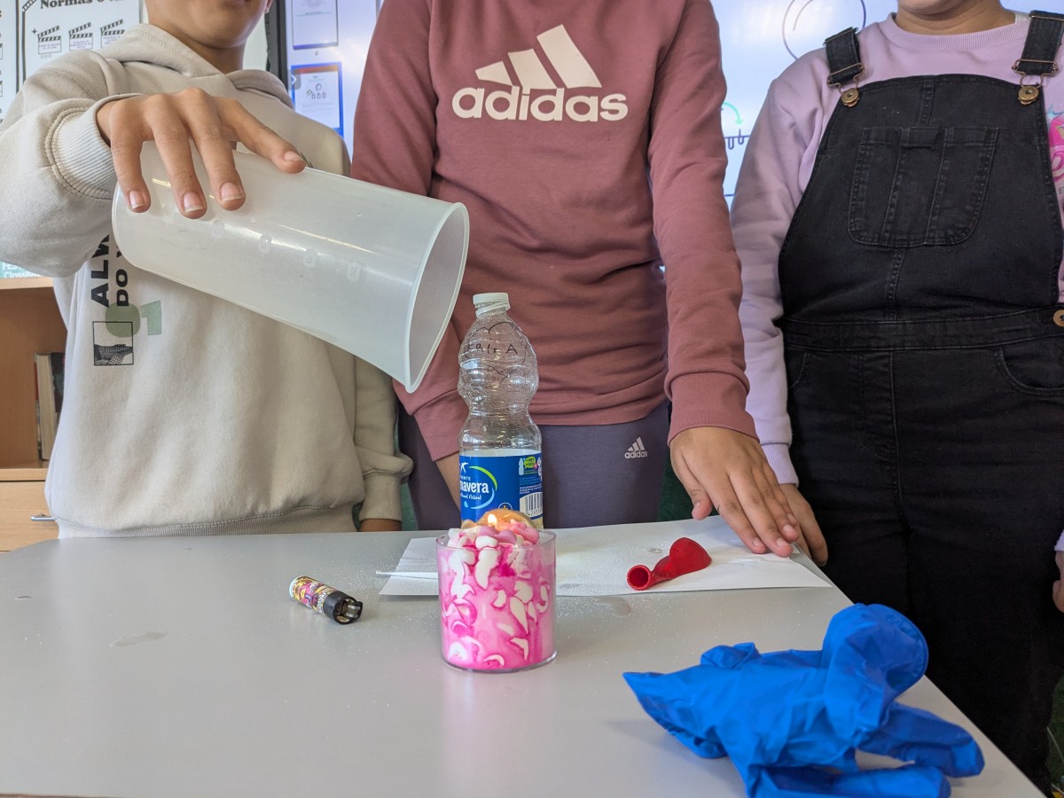 En el experimento descubrimos que no solo existe lo que vemos. Cuando mezclamos vinagre y bicarbonato, se forma un gas que no podemos ver, pero sabemos que está ahí porque infla el globo. También apagó la vela aunque no pudiéramos verlo. Esto me demuestra que hay cosas invisibles, como los gases, que también son materia. La densidad fue importante porque el gas que se formó tiene más densidad que el aire, por eso bajó hacia la vela y la apagó. También ocupó espacio dentro del globo, lo que hizo que se inflara. Gracias a esto hemos comprendido que la densidad influye en cómo se comportan los gases.