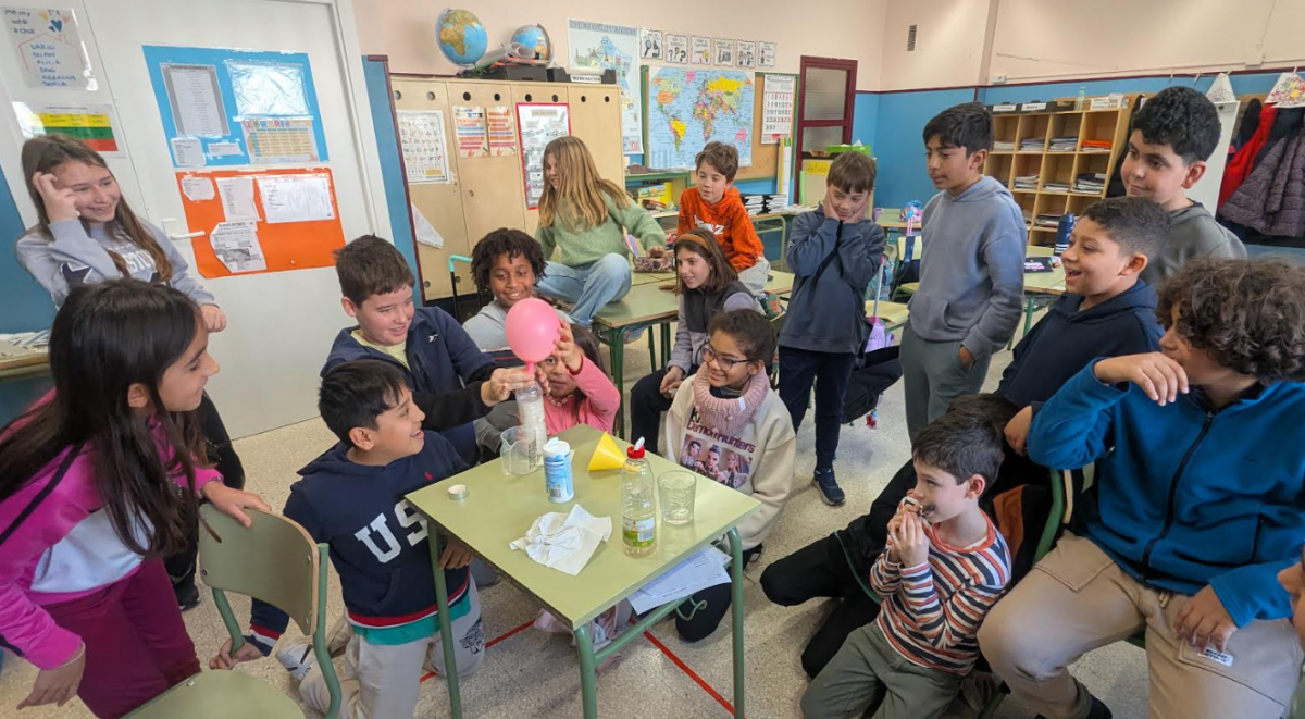 EXPERIMENT: The mystery of the candles that go out on their own. El misterio de las velas que se apagan solas. Make an OBSERVATION We observe that the balloon is filled with gas. Observamos que el globo se llena de gas. Ask a QUESTION Can we demonstrate inside the balloon there is gas? Can we pour the gas in a jar and use it to put out a candle? ¿Podemos demostrar que dentro del globo hay gas? ¿Podemos verter el gas en una jarra y usarlo para apagar la vela? Make a HYPOTHESIS We can put down the fire using the gas because it is CO2 and this gas does not allow the fire to be on. Sí podremos apagar el fuego usando el gas porque es CO2 y este gas no permite que el fuego que siga encendido. We can’t pour the gas into the jar because it will escape. No podremos echar el gas en la jarra porque se escapará. We can’t put out the candle using the gas because when you try to put the gas on the candle the gas goes around the room. No podremos apagar la vela usando el gas porque cuando tratemos de echar el gas en la vela el gas se esparcirá por la clase. We can’t put out the fire using the gas because I think the balloon will explode before. No podremos apagar la vela porque el globo con el gas explotará antes. Conduct your EXPERIMENT Materials A candle A lighter A jar Vinegar Bicarbonate of soda A balloon A funnel Procedure 1.Measure 100 millilitres of vinegar with the jar and put it in a bottle. Mide 100 ml de vinagre con una jarra y échalo en una botella. 2. Place a spoonful of bicarbonate of soda in the balloon. Pon una cucharada de bicarbonato en el globo. 3.Place the opening of the balloon around the neck of the bottle, Coloca la boca del globo alrededor de la boca de la botella. 4. Light a candle Enciende la vela 5. Lift up the balloon and allow the bicarbonate to fall into the bottle. Eleva el globo y deja que caiga el bicarbonato en la botella. 6. Remove the balloon from the bottle. Quita el globo de la botella. 7. Place the balloon opening above the jar and open it slowly. Pon la apertura del globo sobre la jarra y ábrela un poco. 8. Pour the invisible content of the jar over the candle. Vierte el contenido invisible de la jarra sobre la vela. Report your RESULTS The balloon inflates very quickly. We pour the gas on the candle and …The candle goes out! El globo se infla muy rápido. Echamos el gas encima de la vela y…. ¡La vela se apaga! Draw CONCLUSIONS My hypothesis was correct/incorrect. The gas stays inside the jar and we can pour it on the candle in order to put it out. Mi hipótesis es correcta/incorrecta. El gas se queda dentro de la jarra y lo podemos verter encima de la vela para apagarla.