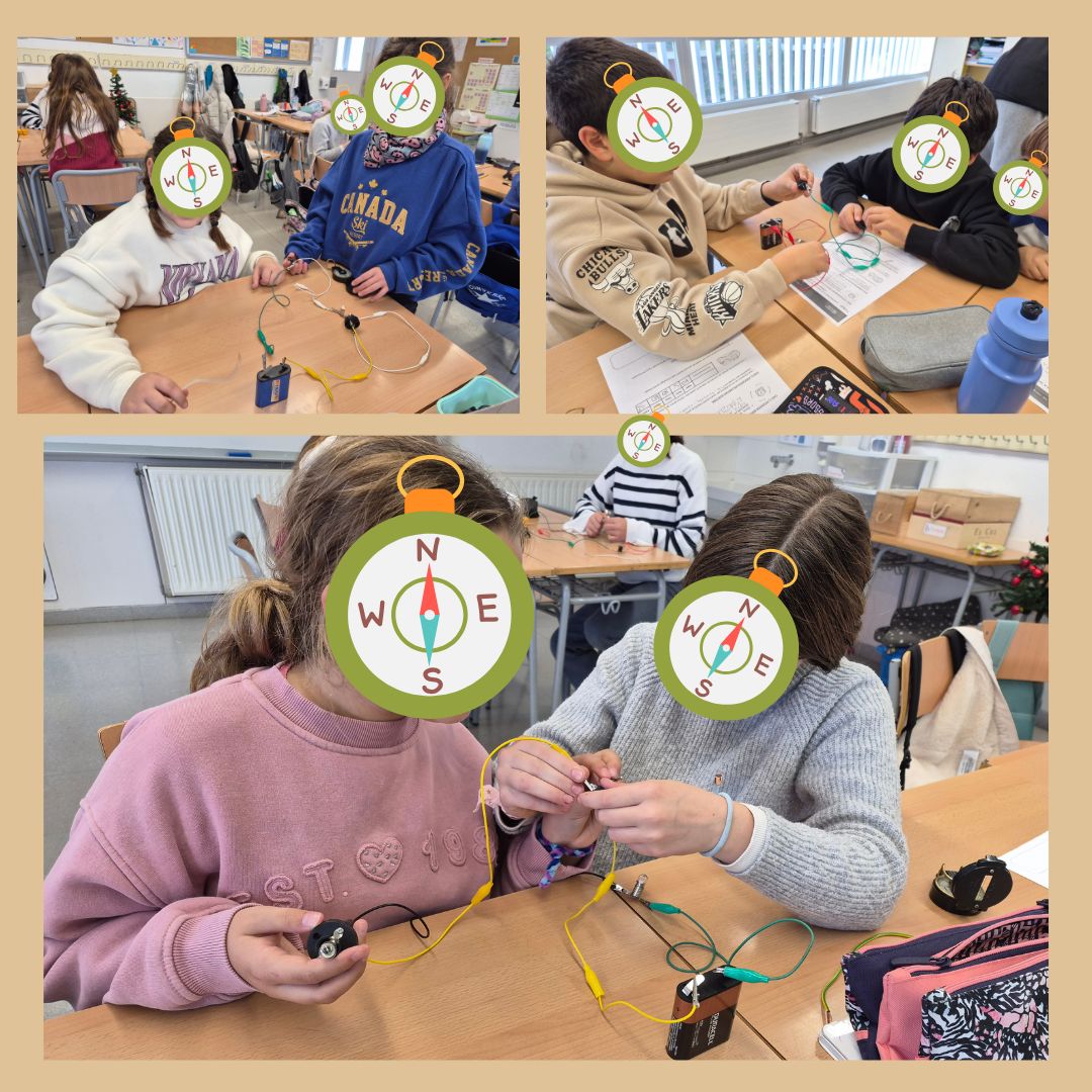 Hem descobert quins elements fan falta per muntar un circuit (pila, cables i bombeta). A més, també hem pogut investigar i descobrir quins materials són conductors de l'electricitat i permetien que la bombeta s'encengués i quins altres eren aïllants i no permetien que s'encengués. Per últim, hem vist com quan apropàvem el circuit o els imants a la brúixola, provocaven que l'agulla perdés el nord i comencés a girar cap a altres direccions. Ens ha agradat molt i alguns de nosaltres ho hem relacionat amb el que s'explica a la sèrie de Stranger Things on l'agulla de la brúixola dels nois se sent atreta pel camp magnètic del laboratori de Hawkins en lloc del Pol Nord.