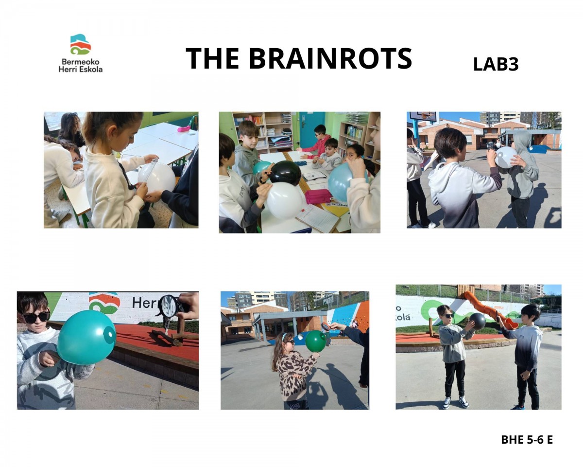 We did Lab 3: The Mystery of the Bursting Balloons. It was successful on the first day because the weather was sunny. These are our conclusions: The balloons pop because the rubber gets hot from the light energy. When the rubber gets hot, it stretches and the balloon breaks. Each balloon takes in the light that it does not reflect. The white balloon reflects all the light, the black balloon takes in all the light, and the colored balloons take in all the light except their own color.