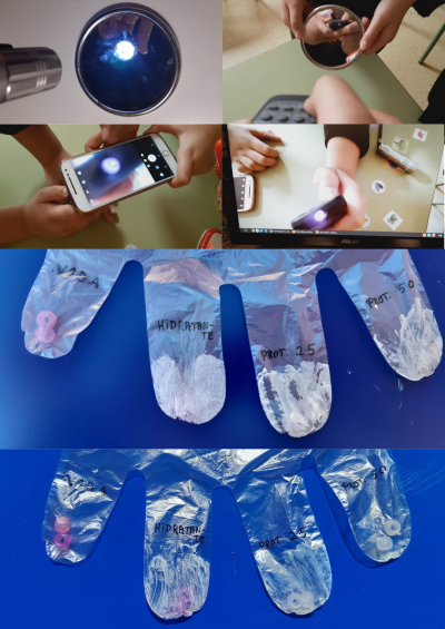 Decimos que con la ayuda de la ciencia podemos ver lo invisible porque con nuestros ojos no podemos ver todas las luces. La luz infrarroja de un mando a distancia, por ejemplo, a simple vista no la vemos pero utilizando una cámara digital ya sea de un móvil o una webcam, sí que la podemos ver, vemos un punto rojo. La luz ultravioleta que produce el sol tampoco la podemos ver directamente con nuestros ojos. Podemos observarla gracias a las cuentas que la detectan y cambian de color. Gracias a estas cuentas nos hemos dado cuenta de la necesidad de protegernos para no quemarnos la piel.