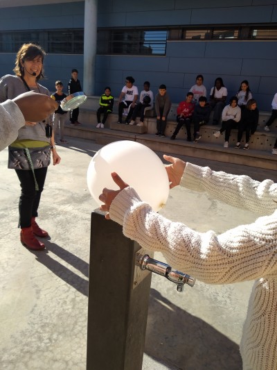 Quan la llum del sol el concentra en un lloc en concret del globus la goma s’estira i explota, i segons el color del globus explota abans o més tard, si el color del globus és més clar tarda més i si és més fosc tarda menys, per exemple: El negre triga 0 segons, i el blanc no explota! Això passa perquè els globus absorbeixen la llum blanca (que té tots els colors) menys el seu color i com més colors absorbeixi més de pressa exploten, per això el globus blanc no explota (perquè no absorbeix la llum blanca), en canvi, el negre absorbeix tots els colors barrejats. Abdoulaye