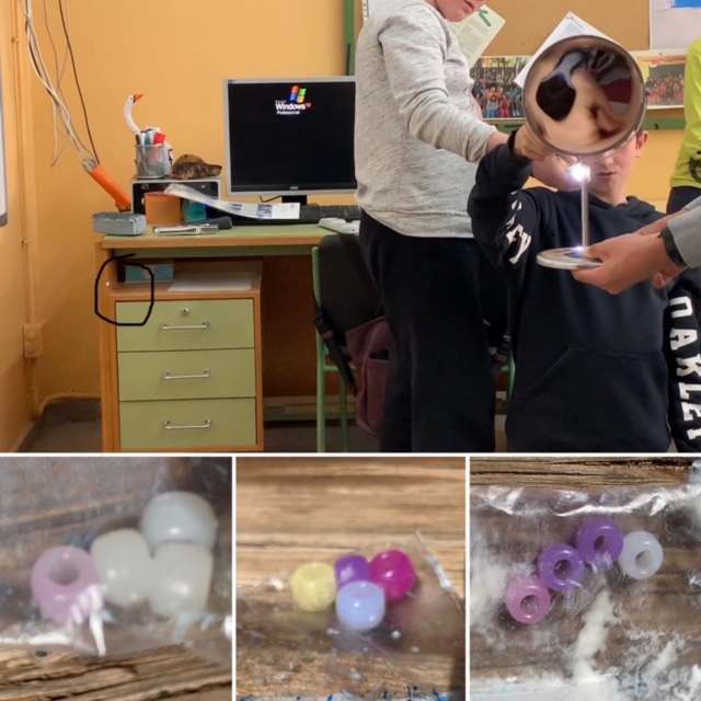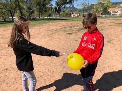 Vam començar inflant els globus a la classe, després vam sortir al pati i vam començar l’experiment. Ens vam repartir en grups i ens vam posar tots les ulleres de sol. Alguns globus van petar abans de començar l’experiment ja que al nostre pati hi ha moltes herbes, feia vent i se’ns escapaven. Sort que en teníem molts (cada grup 7 globus) i vam poder fer l’experiment! Vam agafar les lupes intentant concentrar els rajos de sol en un mateix punt del globus. Quan ho aconseguíem posàvem el crono en marxa i esperàvem que explotés. En algun cas no vam tenir ni temps de posar el crono, sobretot amb el globus negre. A alguns no ens feia massa gràcia que explotessin els globus i els manteníem una mica allunyats!!! Amb aquest experiment hem après diverses coses sobre els colors, la llum, l’energia… Una de les més importants és que la llum del sol és molt potent perquè il·lumina, escalfa i crema. Per aquesta raó els globus van explotar. Ha estat molt divertit i sorollós!!!