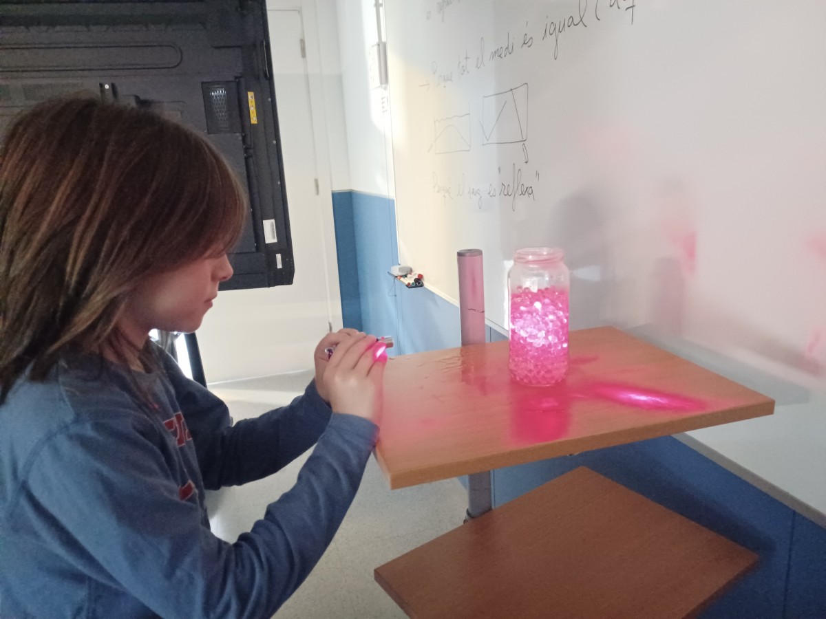 La llum no viatja de la mateixa manera a tots els medis. La refracció és el fonomen que es produeix quan un raig de llum incideix en la superfície de separació de dos medis diferents (coml'aigua i l'aire). Aquest fenomen fa que la llum canviï de direcció i ha estat molt important en els nostres experiments. Conèixer i utilitzar les propietats de la llum és i ha estat molt important en el desenvolupament de tecnologia.