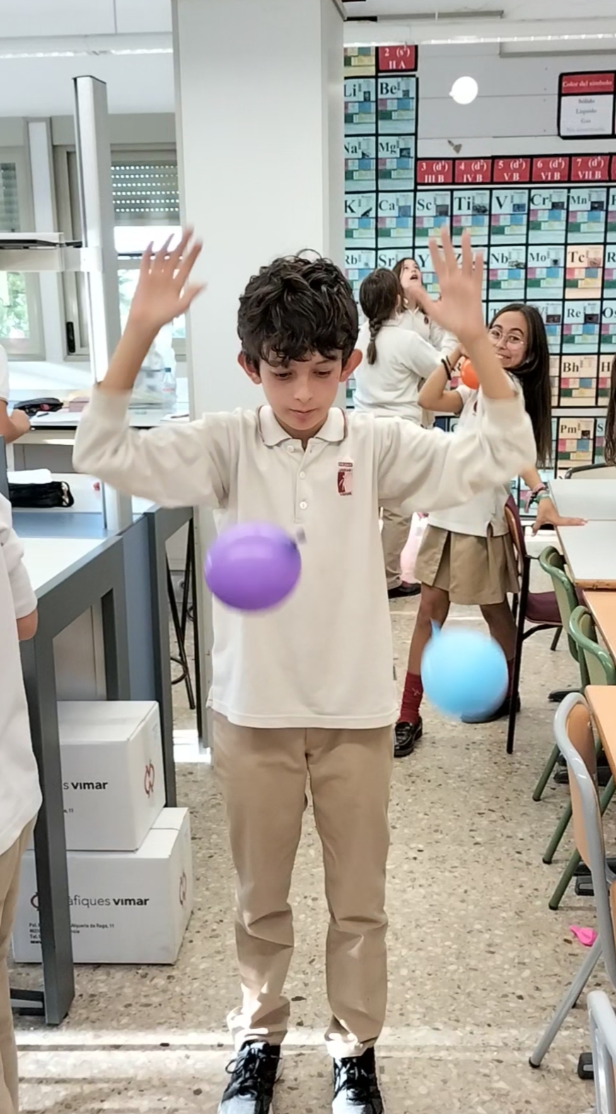 Tras la pregunta lanzada al alumnado, al finalizar el laboratorio: ¿Por qué ha ganado la carrera el globo de CO2 frente al de aire? La respuesta ha sido unánime: El gas "creado", o sea CO2, es más denso. Terminada la reacción química entre el vinagre y el bicarbonato, hemos lanzado dos globos de un volumen similar, desde la misma altura; uno de ellos tenía CO2 creado y otro, simplemente aire. El globo de CO2 ha llegado antes al suelo, eso quiere decir que su densidad es mayor y se ha visto más atraído por la gravedad. Además el gas creado ha sido utilizado para apagar velas desplazando al oxígeno. Un aprendizaje manipulativo sencillo y a la par inolvidable.