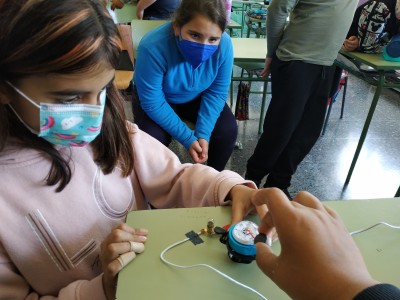 Tiene que tener una pila generadora, una bombilla y el cable por el que circula. Sí que ejercen fuerzas sin que se toquen. Los imanes se repelen debido a los electrones que tienen dentro. La aguja señala al Norte por la fuerza magnética que ejerce la Tierra.