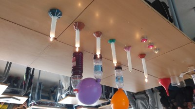 Hem aprés: 1- Que quan el vinagre i el bicarbonat s'ajunten té lloc una reacció base en la qual es desprèn un gas: CO2. 2-Perquè la flama de l'espelma pugui romandre encesa es necessita oxigen. 3-Quan aboquem, sobre la vela, el gas que passa del globus al vas. El CO2 baixa per ser més dens i l'aire puja per ser menys dens. Com que els dos gasós no poden estar al mateix lloc alhora, si l'aire puja, queda fora de l'abast de l'espelma. Sense aire no hi ha oxigen. Sense oxigen no és possible la combustió i és per això que la flama s'ofega i s'apaga l'espelma. Aquest experiment ens ha agradat molt i ens ha semblat molt interessant. Desitgem poder fer el pròxim.